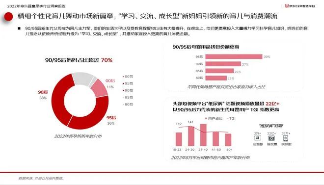 近日,京東零售母嬰采銷部聯(lián)合京東C2M智造平臺(tái)聯(lián)合推出《京東嬰童尿褲行業(yè)趨勢(shì)洞察》,報(bào)告顯示:90/95后新生代父母成為育兒主力軍,學(xué)習(xí)、交流、成長(zhǎng)型新媽媽引領(lǐng)新的育兒與消費(fèi)潮流;嬰童尿褲品牌競(jìng)爭(zhēng)加劇,國(guó)貨玩家強(qiáng)勢(shì)崛起,市場(chǎng)豐富度提升;線上渠道銷售占比逐年提升,線上綜合電商成文嬰童尿褲最大銷售陣地,京東品質(zhì)保障讓育兒更安心。